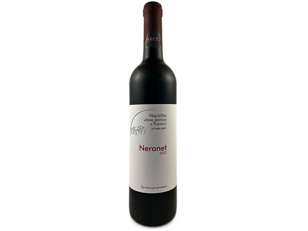 Neronet červené suché odrodové víno pochádza z nitrianskej vinohradníckej oblasti, konkrétne z rajónu Tekov, kde odroda nachádza ideálne podmienky na svoj prejav. Výrobcom je Najväčšia vínna pivnica v Pukanci, ktorá je známa tradičným vinohradníckym dedičstvom regiónu. Víno dozrievalo v dubových sudoch, čo mu dodalo jemnú noblesu, uhladenosť a dotyk vanilkovo-toastových tónov, ktoré harmonicky dopĺňajú prirodzený charakter odrody. Neronet sa vyznačuje hlbokou, intenzívnou farbou a plným, výrazným prejavom. Vo vôni dominujú čierne ríbezle, jemné čokoládové nuansy a akcenty zrelého bobuľového ovocia. Chuť je harmonická s príjemnou štruktúrou a jemnou trieslovinou. Výsledkom je suché výrazné a pritom dobre pitelné červené víno, ktoré výborne doplní jedlá z červeného mäsa, diviny či zrelé syry.